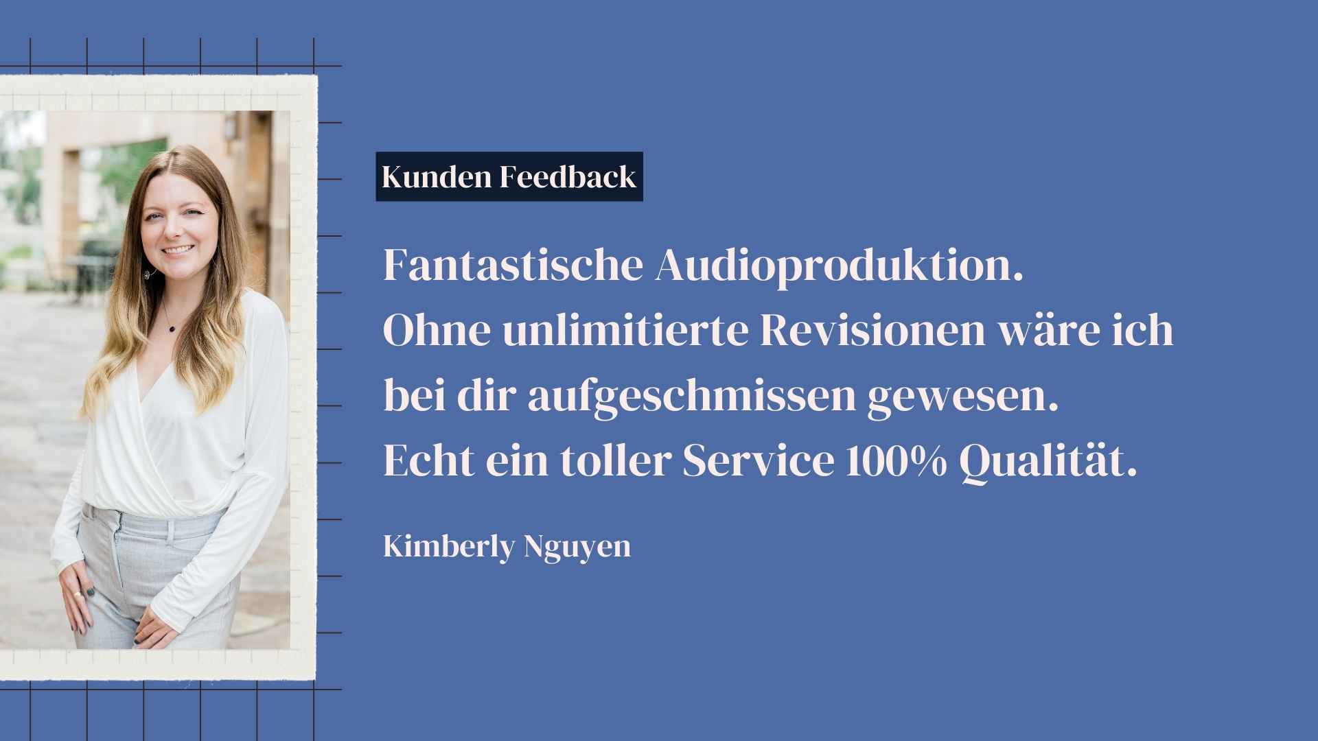 Nach der Aufnahme senden ich Ihnen die Dateien so wie vereinbart zu. Sie erhalten umgehend eine Rechnung, die zeitnah aber auf jeden Fall vor Nutzung der Aufnahme beglichen werden muss.